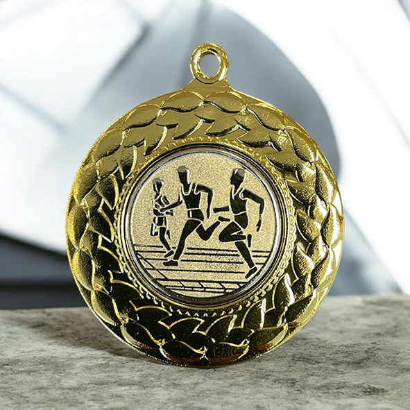 Medalj Löpning Guld 45mm inkl.guldkrans. Finns även i silver och brons