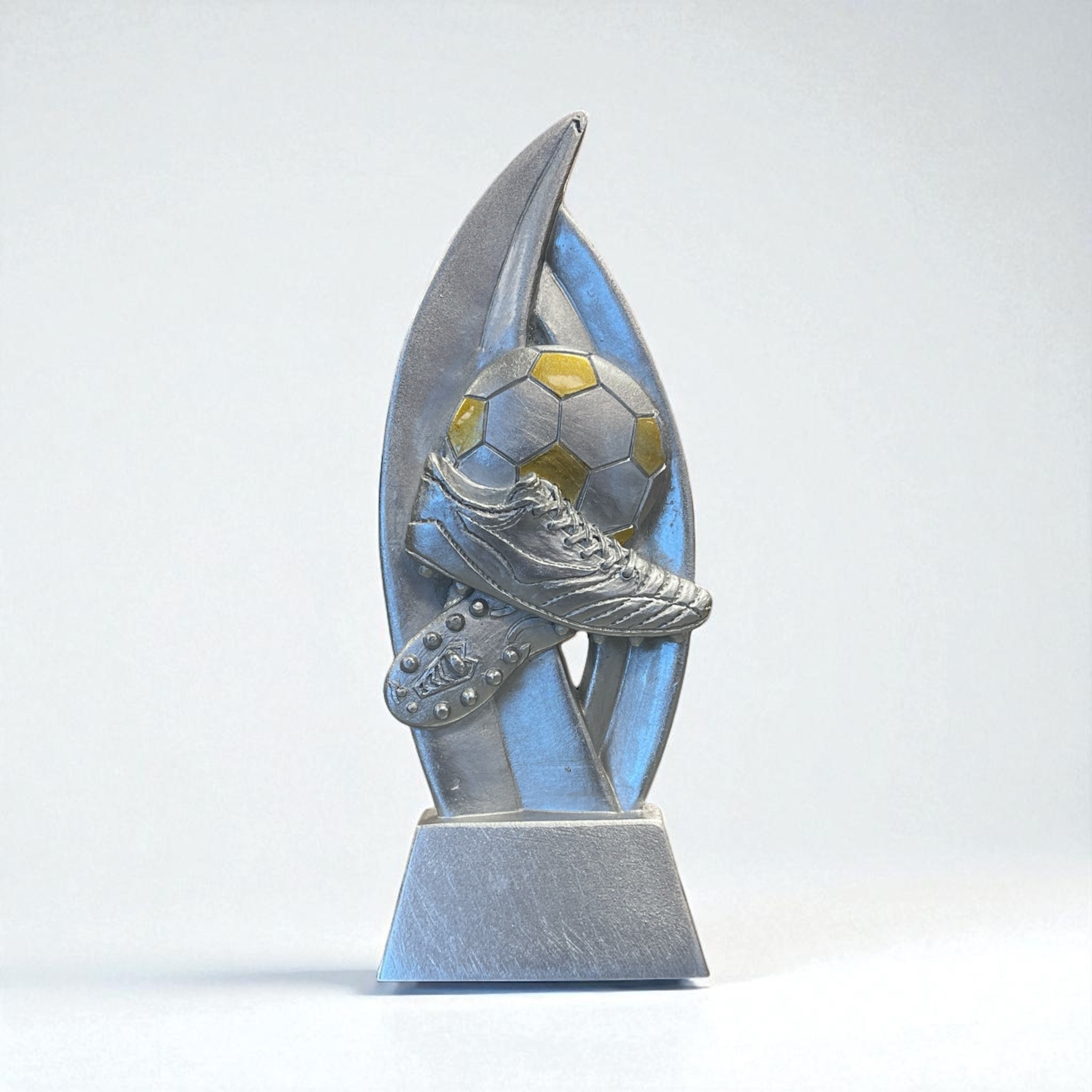 Fotbollsstatyett med boll & skor . Silver/guld . Höjd 180mm guld