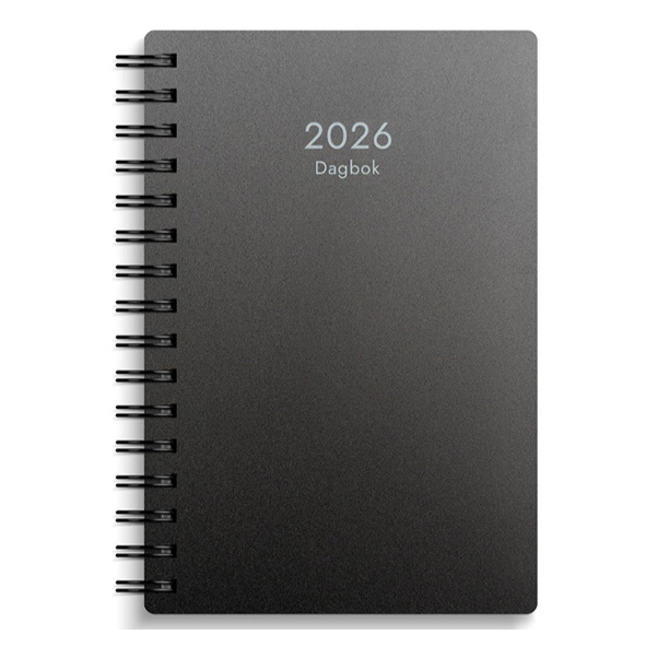 Almanacka Burde 1023 Dagbok PP-plast 2026 Svart. Kalender 2026 från Burde. Format: 135×205 mm. Layout: Dag/sida. Timindelning 8-19. Kalendarium: 2026-01-01 – 2026-12-31. Omslag: Återvunnen PP-plast. Spiralbunden. Detaljer: Plastficka. Innehåll: Urstansat månadsregister, Årsplaner. Antal sidor: 400. Miljöinformation: FSC®. Omslag i återvunnen PP-plast.