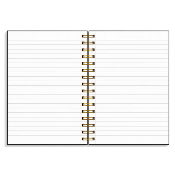 Anteckningsbok spiralbunden. Guldfärgad spiral. 150 blad. Linjerat. Miljömärkt med: FSC®.