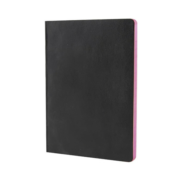 Av hög kvalitet med svarta pärmar av plastbelagt papper. Linjerade. Storlek A5