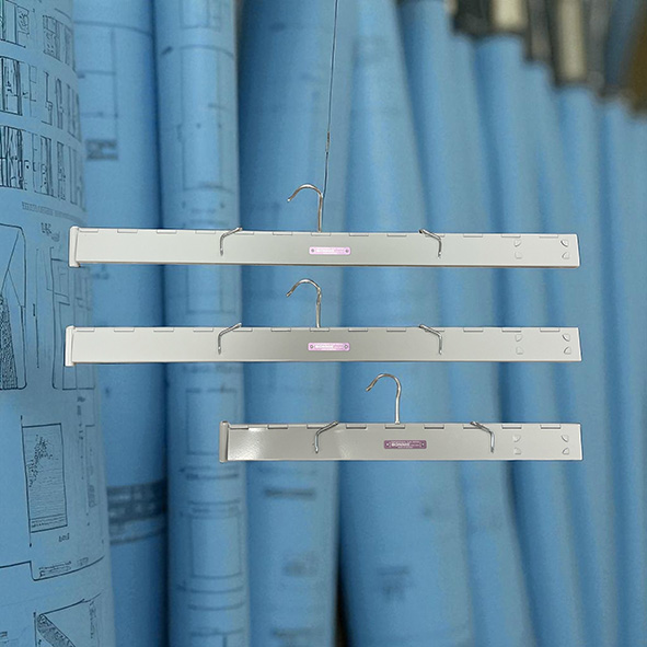 Ritningshållare från Bonnie. Dessa har en uppfällbar krok för att Du skall kunna hänga upp den var du vill, på våra ställningar, på väggen, ute på arbetsplatsen och även för att transportera lättare. Perfekt till att få ordning på ritningar eller affischer.