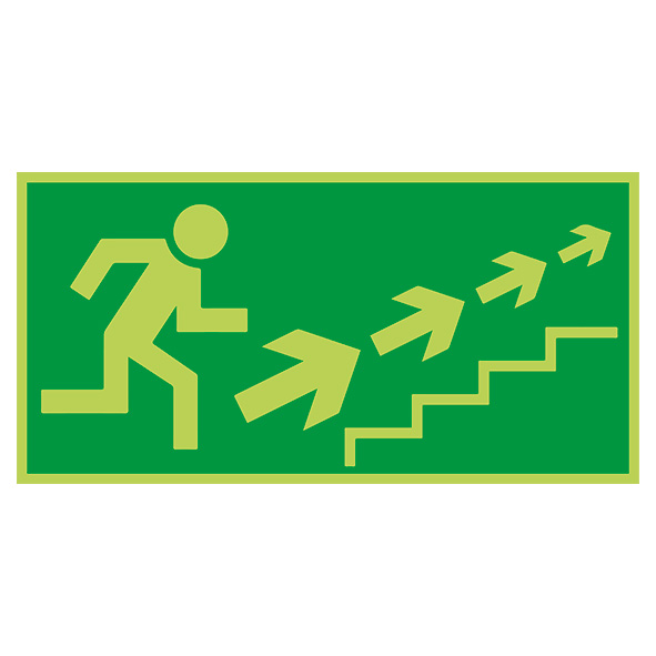Efterlysande Utrymningsskylt trappa upp pil höger