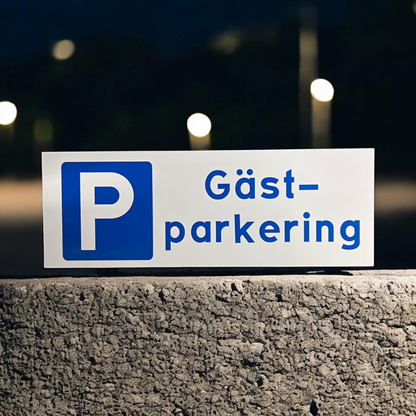 Enskild plats med egen text Parkeringsskylt. Storlek 225×80, 300x105mm och 420x148mm