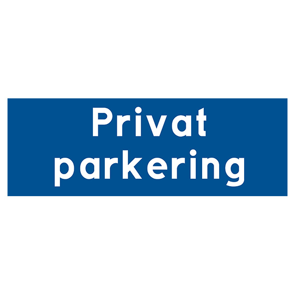 Enskild plats text Privat parkering Parkeringsskylt blå med vit text. Storlek 225×80, 300x105mm och 420x148mm