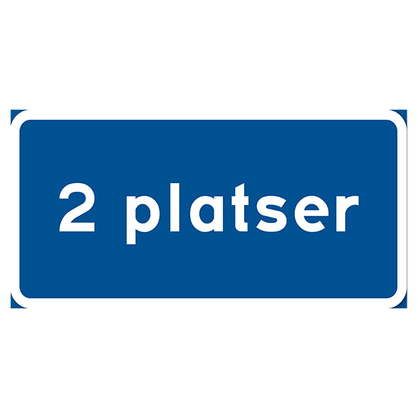 Parkeringsskylt Vägskylt 2 platser. Skyltens mått är antingen 400x200mm eller 480x225mm. Kan beställas både som bockad i över och underkant för montering på stolpe, och som plan plåt eller plastskylt.