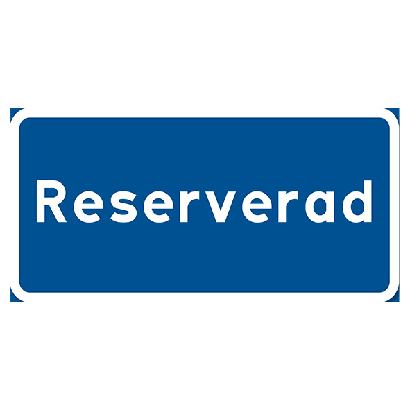 Parkeringsskylt Vägskylt Reserverad. Skyltens mått är antingen 400x200mm eller 480x225mm. Kan beställas både som bockad i över och underkant för montering på stolpe, och som plan plåt eller plastskylt.