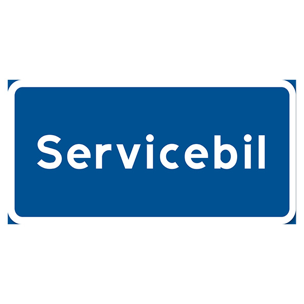 Parkeringsskylt Vägskylt Servicebil. Skyltens mått är antingen 400x200mm eller 480x225mm. Kan beställas både som bockad i över och underkant för montering på stolpe, och som plan plåt eller plastskylt.