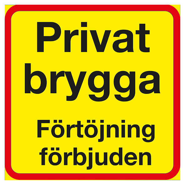Förbudsskylt Privat Brygga förtöjning förbjuden