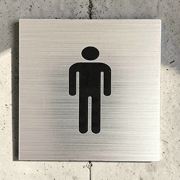 WC Toalettskylt Herr silver med svart symbol. Kan fås i flera storlekar 100×100, 150×150 och 200x200mm