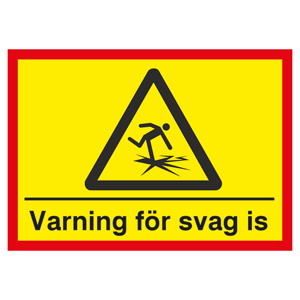 Skylt Varning svag is med röd ram inkl symbol